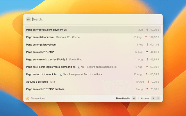 Connect your bank account and see the latest transactions and details.