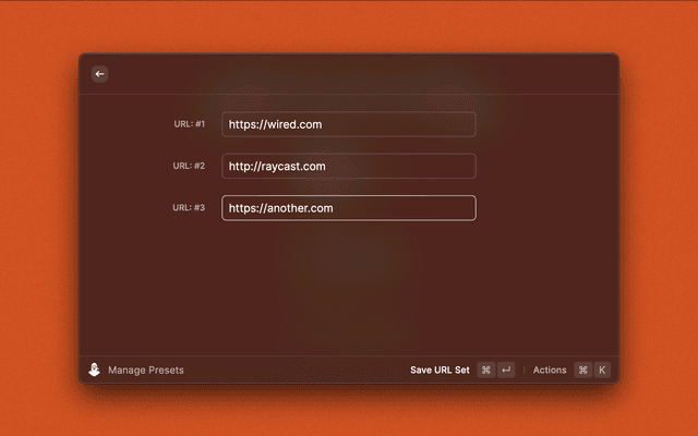 Create presets to launch multiple macOS applications and/or urls from within Raycast
