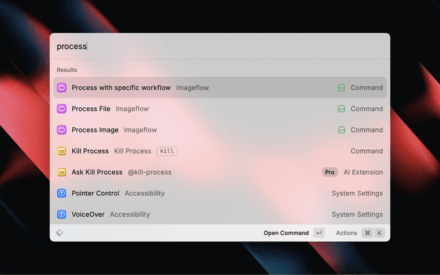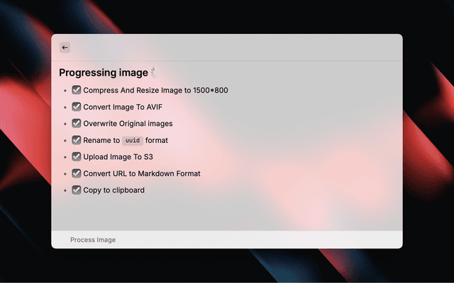 Imageflow is a Raycast extension for processing images with custom pipelines, you can organize operations such as resizing, uploading, and compressing into a pipeline to process images in your own way.