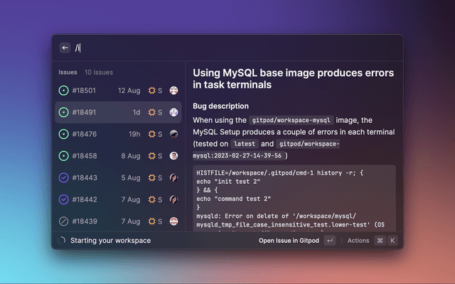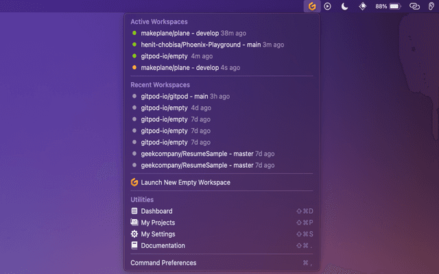 Menubar Workspaces is the command that gets the extension so near to achieving it's goal of making Gitpod Faster than local, with it's function to start workspaces and opening it into your favourite IDE in just a click!