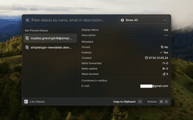 Mange your SimpleLogin Account: view and create aliases