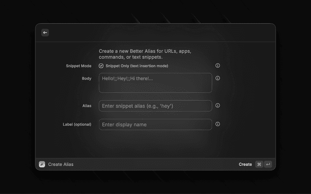 - Better Aliases Config: Path to your aliases and snippets configuration. Defaults to Raycast's extension support folder (