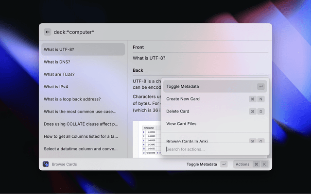 The Anki Extension for Raycast integrates the popular Anki flashcard application with the Raycast interface, providing a keyboard-friendly way to manage and review your Anki decks. It attempts to provide an interface and functionality as close to Anki as possible with the help of the exntensible anki-connect and the rich functionality of Raycast.