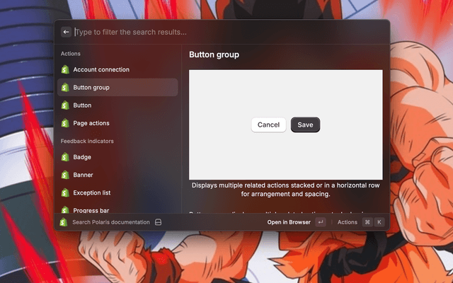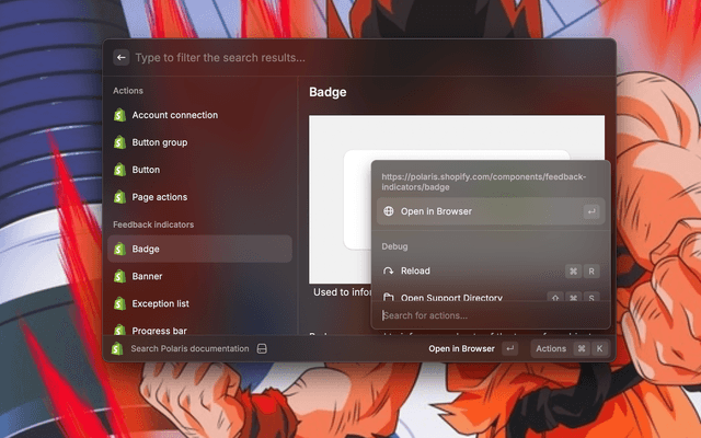 Search through Shopify Polaris documentation directlyfrom Raycast