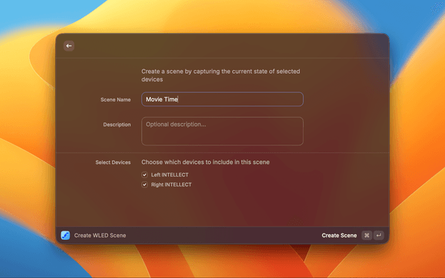 - Create scenes to apply colors to different devices with a single command