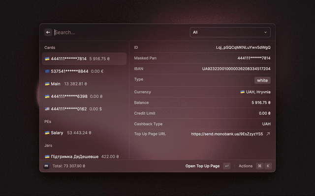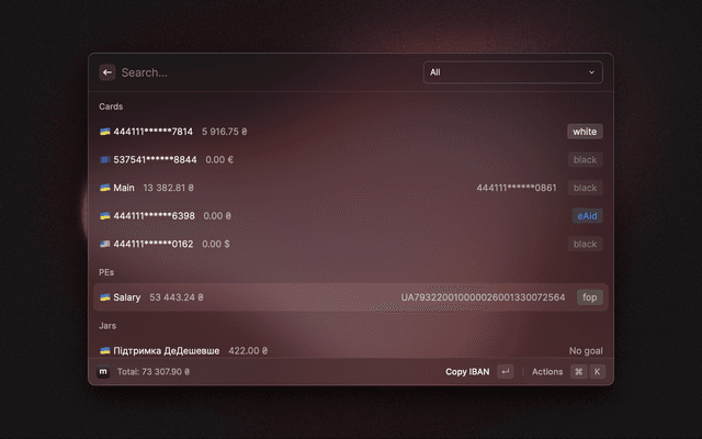 View currency rates and all your accounts in monobank.