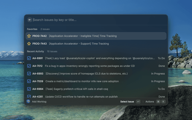 2. Select an issue from favorites, recent activity, assigned issues, or search