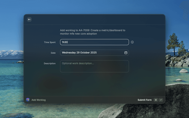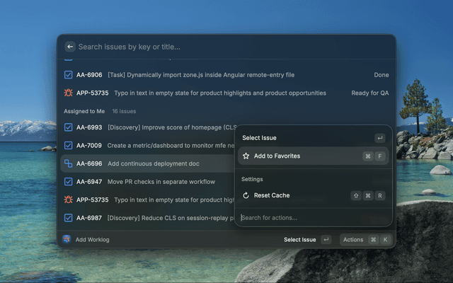 • Add Worklog: Quickly log work hours to any issue with flexible duration formats (1h, 1h30m, 2h)