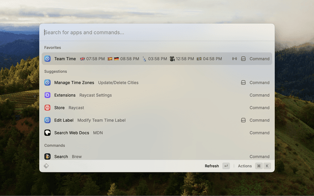 A Raycast extension that allows you to see what time it is in different cities and countries around the world. Easily track multiple time zones for your distributed team.
