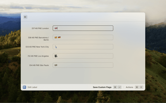 2. Use the "Edit Label" command to customize how time zones appear in the menu bar