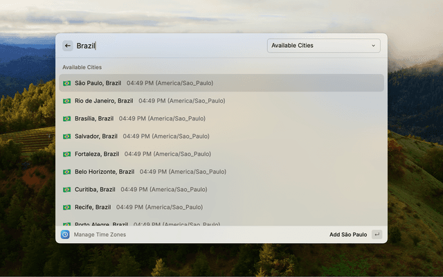 • Customize how time zones are displayed in the menu bar