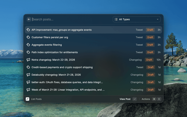 View, manage, and create content with Notra directly from Raycast.