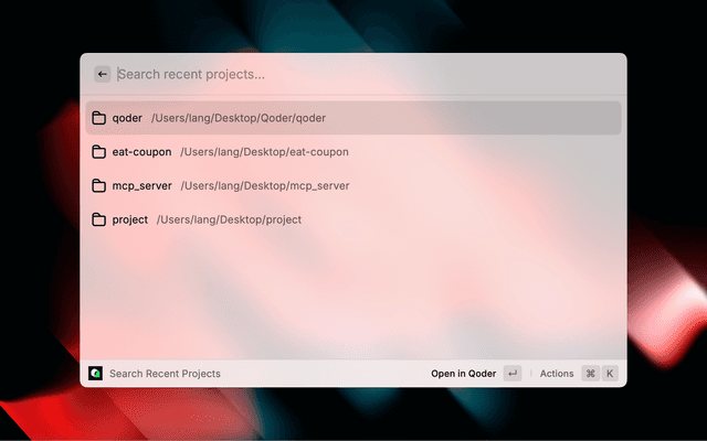 - Search Recent Projects - Quickly search and open your recently accessed Qoder projects