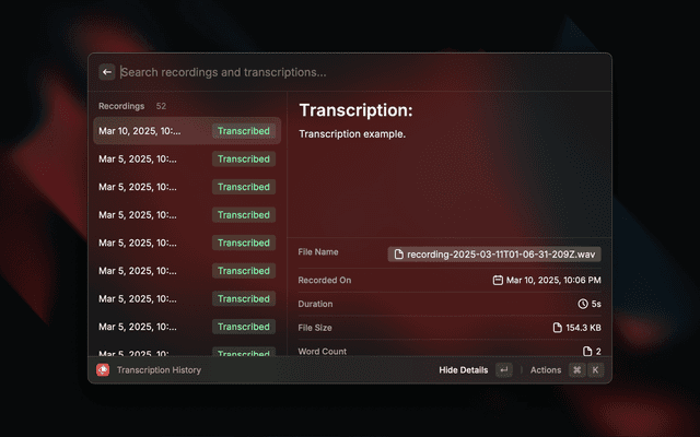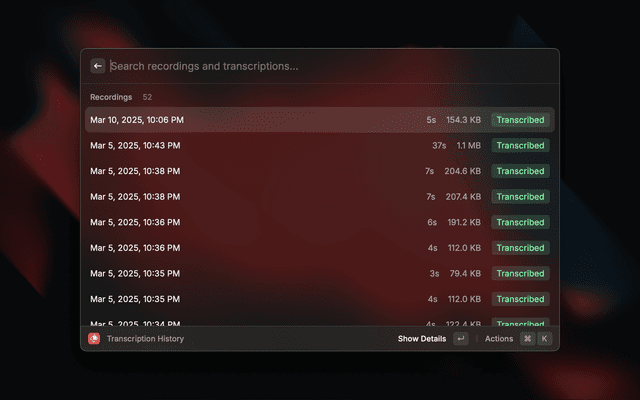• Filter and search through your transcription history