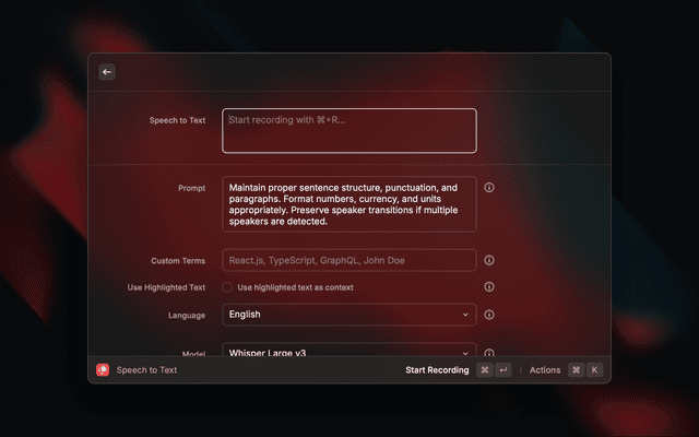 1. Open Raycast and search for "Speech to Text"