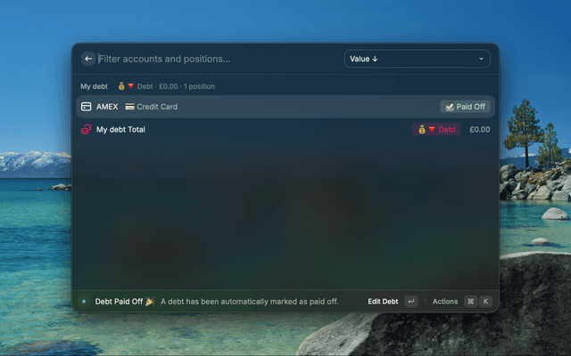 Track your investment portfolio and net worth in real time across multiple accounts, directly from Raycast.