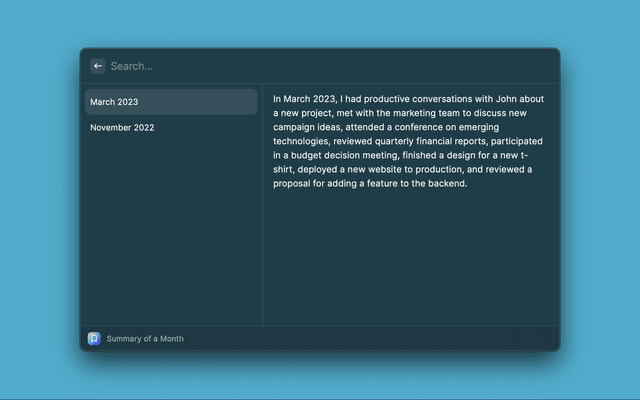 The first time you use the extension, you will be prompted to set up a directory to store your logs. You can also change this later in the Raycast preferences.