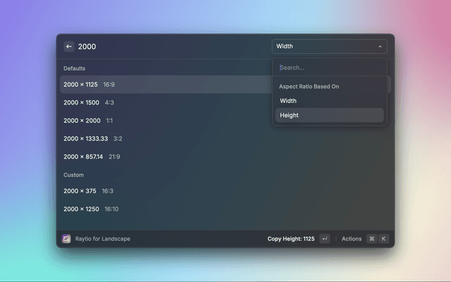 Calculate easily the aspect ratio for different sizes based on a width or height.