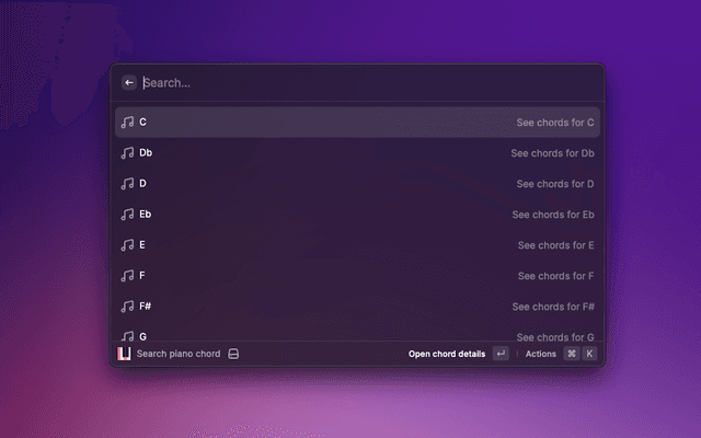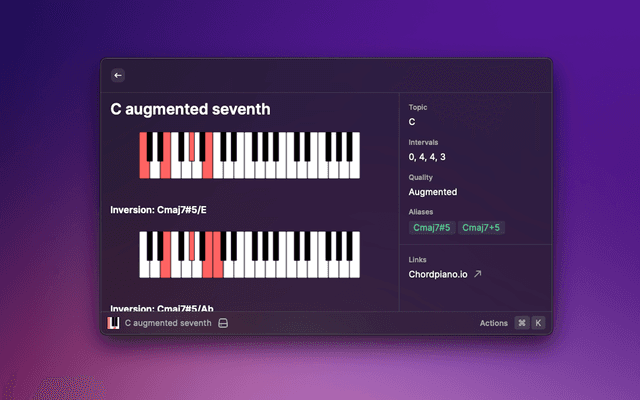 Find and learn piano chords and their inversions. Scales to be added in the future.