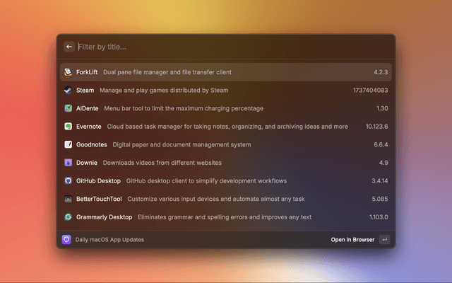 This extension scrapes lists of today's updates and the top 1000 popular apps from macupdater.net.