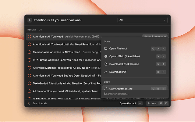 - Open Raycast and search for "Search ArXiv"