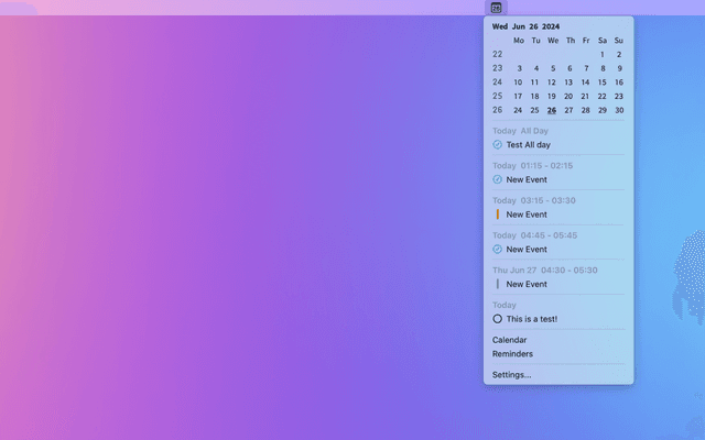 Show calendar and reminders in the menu bar.