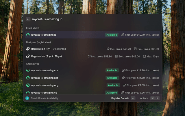 Manage your Gandi domains, DNS records, and check domain availability directly from Raycast.