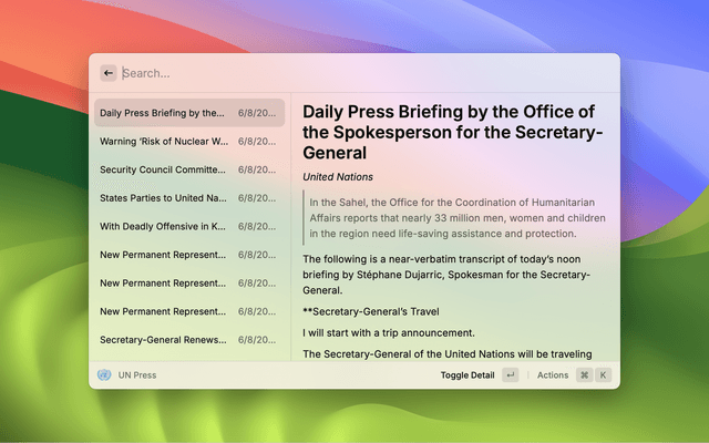 • AI-summarized UN News for Text-to-Speech (macOS only)