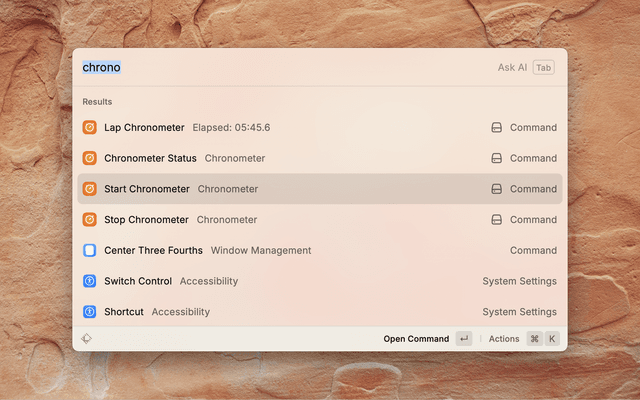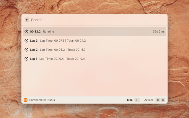 Start, stop, and save countdown timers, directly in Raycast, with no external dependencies.