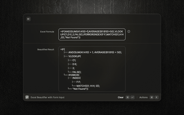 - Live Input: Type or paste a formula and see it beautified instantly, with error feedback as you go.