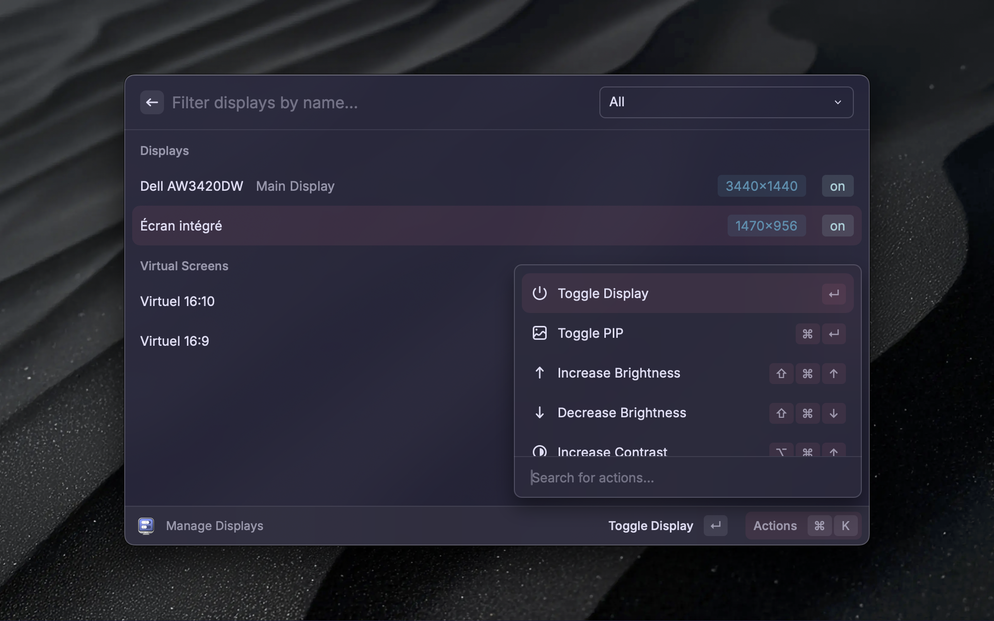 This extension allows you to control your display using BetterDisplay from the comfort of Raycast.