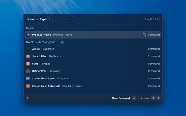 1. Open Raycast and search for Phonetic Typing.