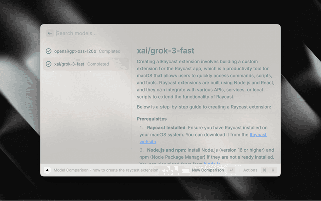 A Raycast extension that integrates the capabilities of Vercel AI Gateway directly into Raycast.
