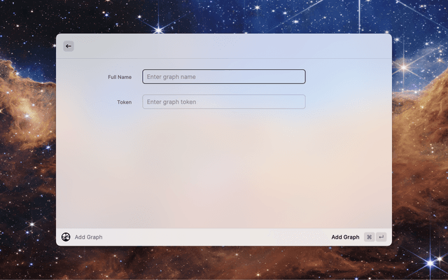 - Then trigger the "Add Graph" Raycast command and add the graph name and copied token to the form. Submit pressing the button or using Cmd+Enter