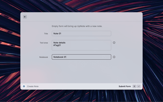 A basic raycast extension that supports creation of a note and notebook along with viewing notes tagged by a specific tag. The extension uses x-callback-url endpoints provided in the documentation.
