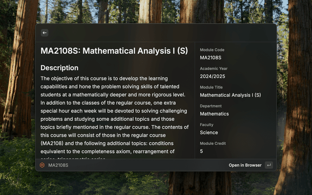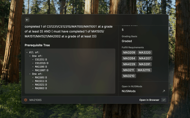 - Open Raycast and search for "NUSMods"