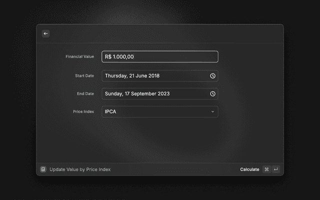 - Update Value by Financial Index: Update a value based on a variety of Brazilian price indices.