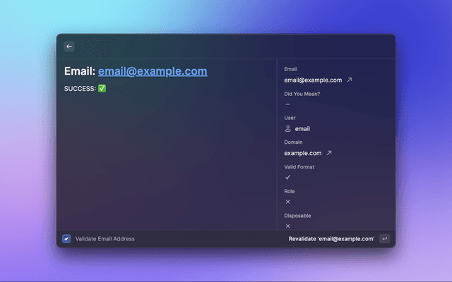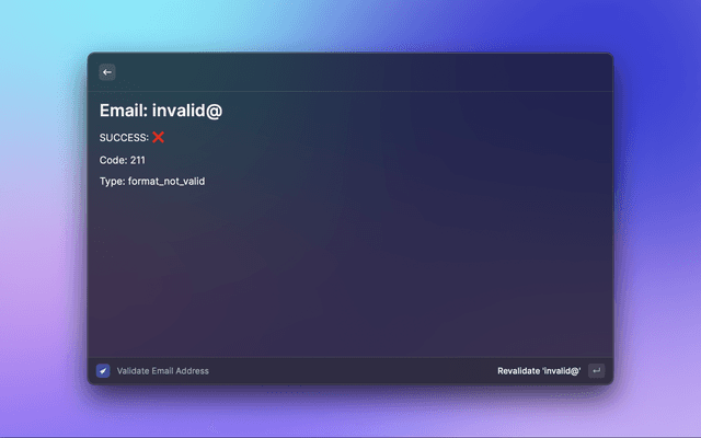 This is a Raycast extension for mailboxlayer. With this extension you can Check and Verify email addresses using mailboxlayer API.