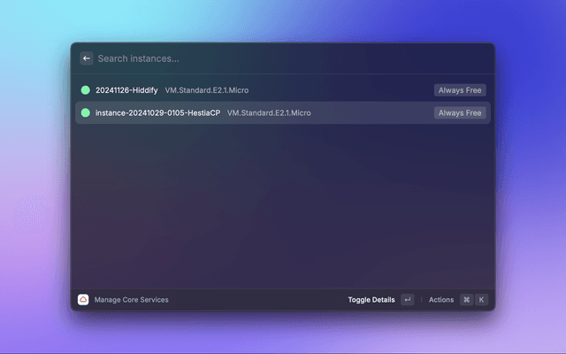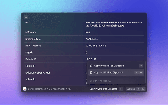 This is a Raycast extension for Oracle Cloud. With this extension you can:
