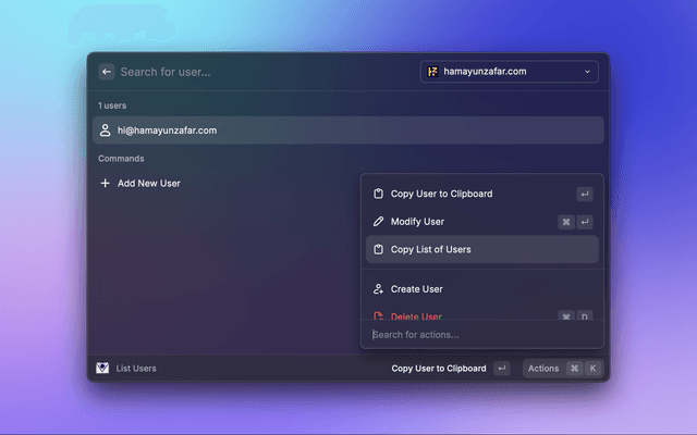 With this extension, you can quickly add or delete domains from your Purelymail account, create or delete users for your domains, create or delete Routing Rules, create or delete app passwords and Check Account Credit.