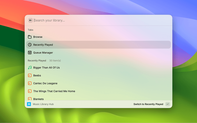 | Music Library Hub | Search, browse, and manage your Music Assistant library |